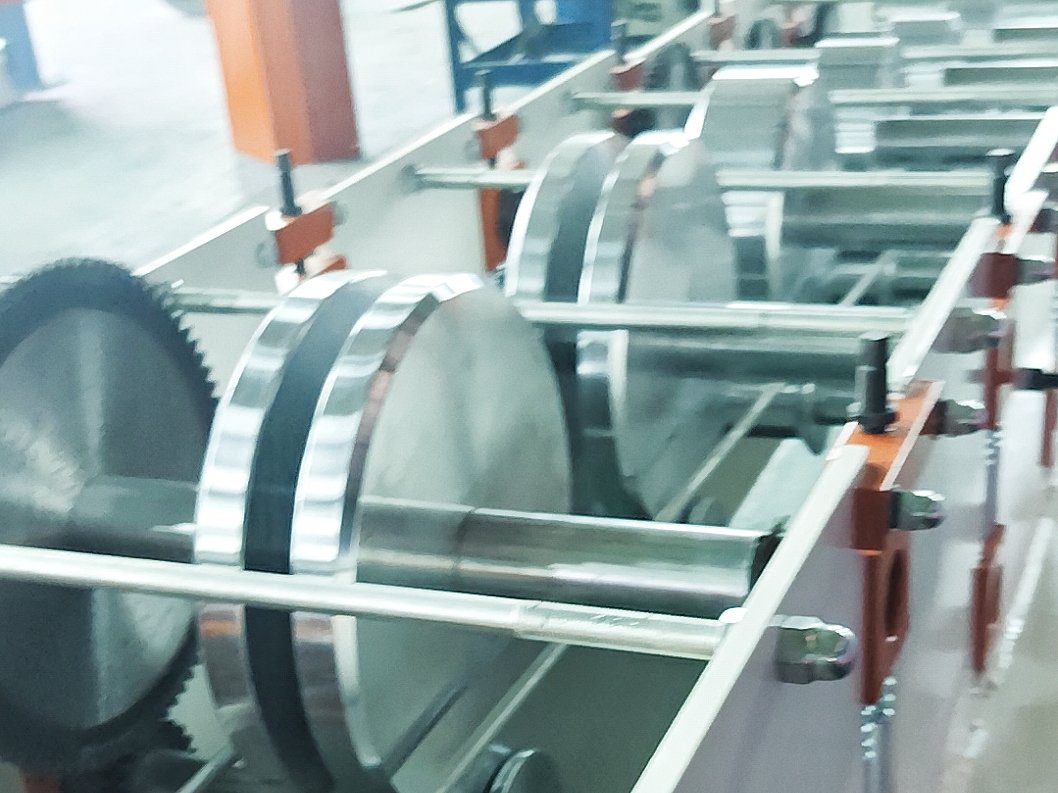2. Roller Groups & Forming Section: This part is the core forming unit of downpipe roll forming machine line. Normally includes: 75mm spindles made from 45# round steel, forming rollers and all rollers will be heat-treated, mirror-polished, hard chrome-plated for wear resistance and a smooth finish. The machine frame will be made from H350 beam often, then each station forming rollers will be installed up on machine frame and driven by high quality motor for cold roll forming the downspout shapes as required.