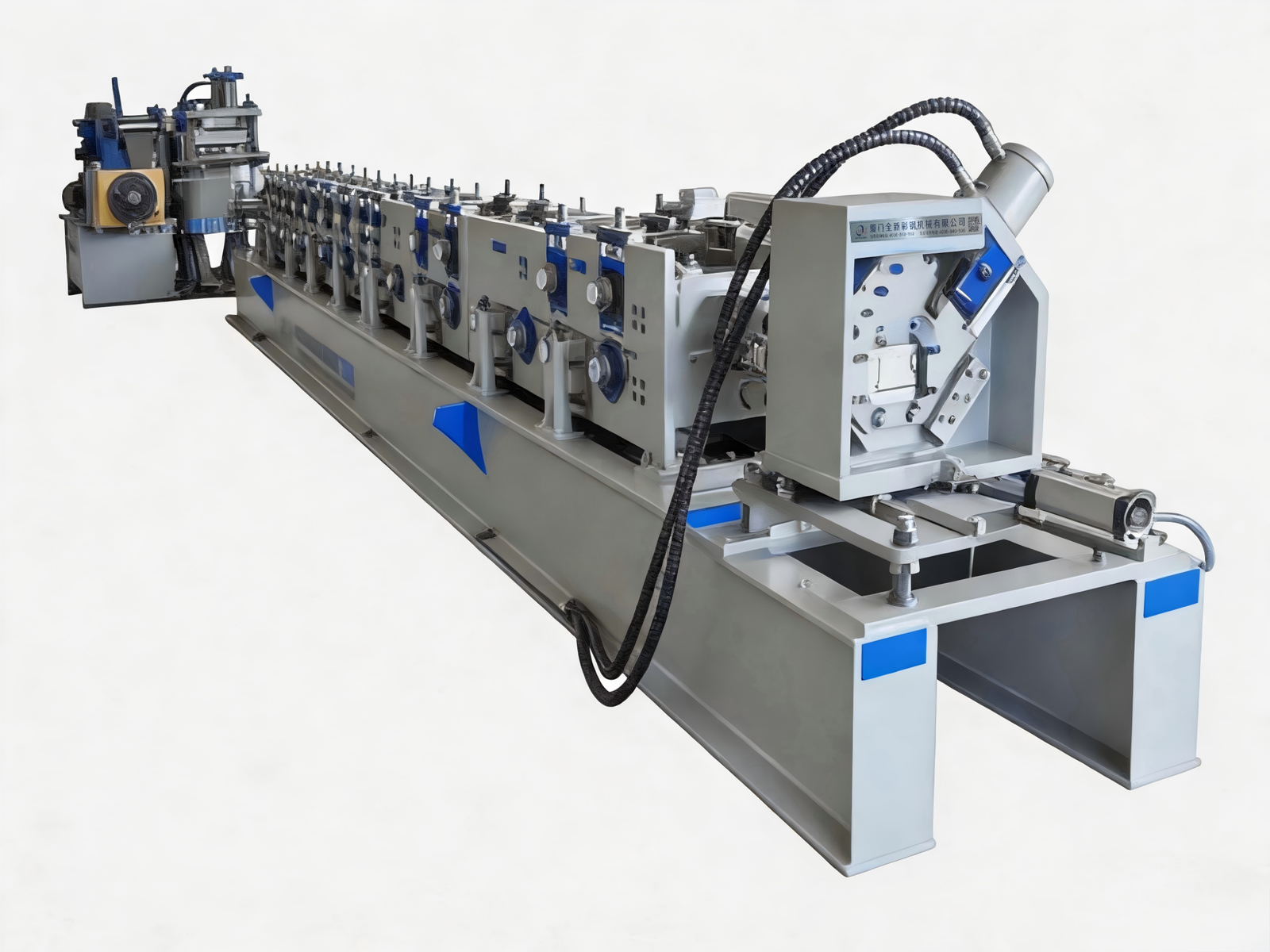 18-step forming station: Using progressive roll forming technology, the sheet metal deformation is divided into 18 consecutive processes to prevent stress concentration and cross-sectional distortion caused by single-step forming, ensuring that the straightness and perpendicularity deviations of the columns are controlled within ±0.2mm;
